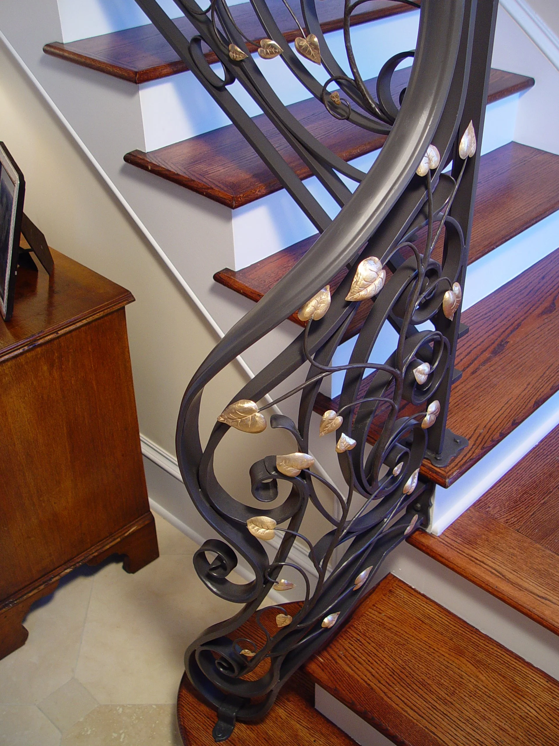 Polished brass, cast iron, wrought iron, carved wood, and forged steel.